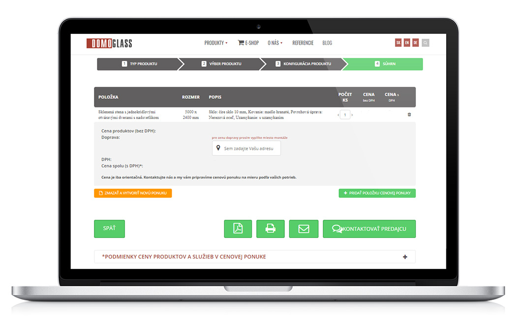 Doprava a odborná montáž skiel je súčasťou našich služieb a odhad tejto položky sa vám zobrazí po vyplnení miesta realizácie, teda adresy, kde chcete sklenenú stenu umiestniť.