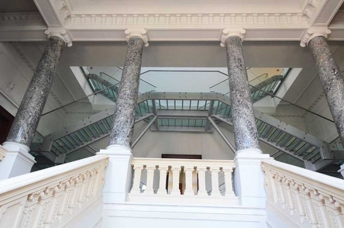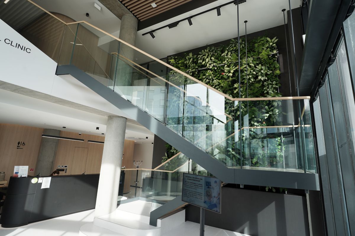 - Výberom sklenených nášľapných plôch a tenkých konštrukčných prvkov možno dosiahnuť väčšiu otvorenosť priestrou medzi poschodiami.